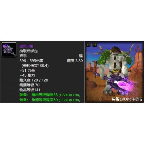 魔兽世界国际服燃烧的远征(诅咒火炬)属性:52 力量66 耐力攻强 126暴击与急速优秀